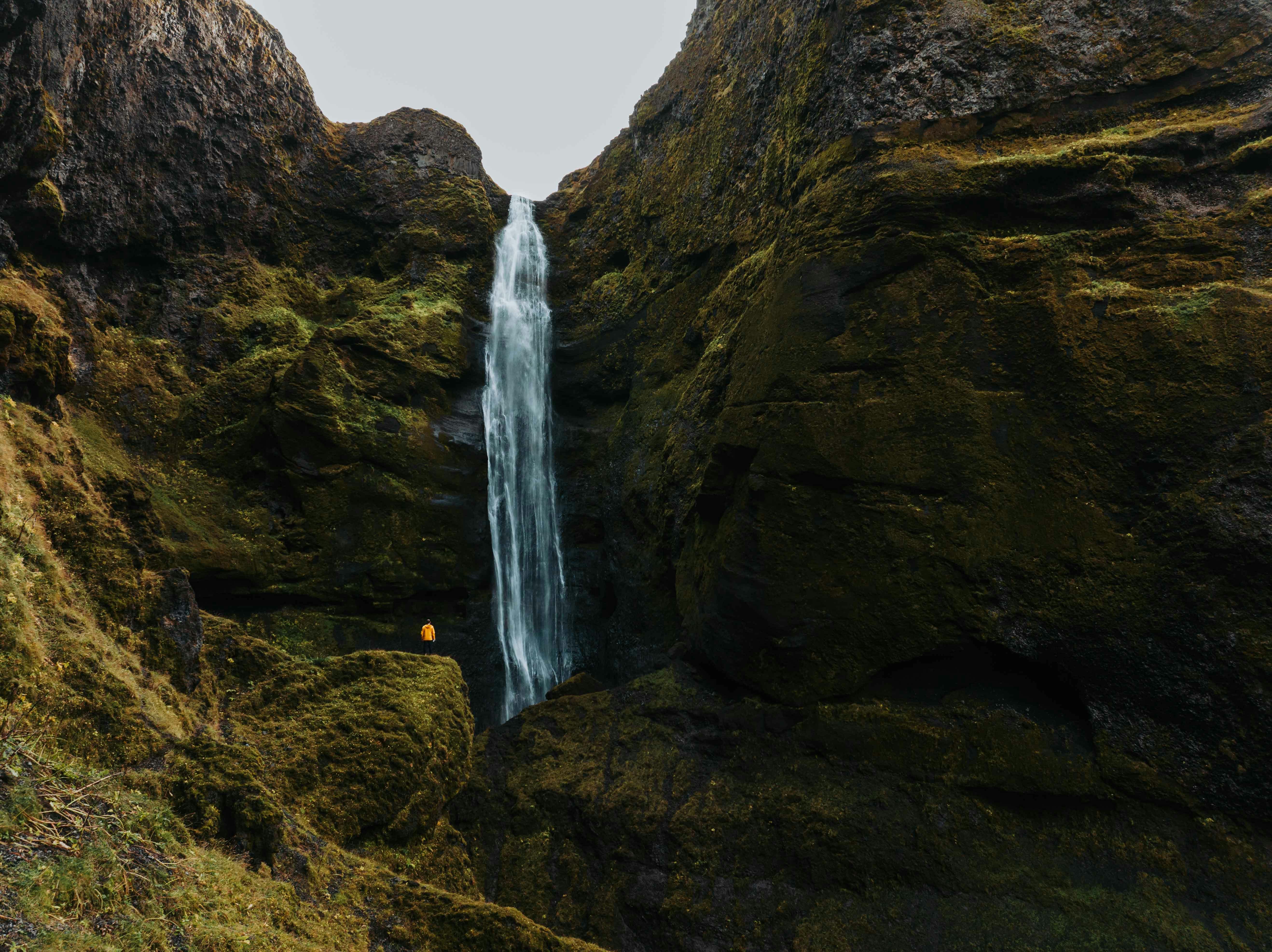 De rivier kronkelde door een prachtige canyon omhoog. Het pad werd steeds steiler en vager. Met moeite konden we het pad volgen, maar er was in principe toch maar één richting die we konden volgen: stroom opwaarts, dieper in de canyon. De rivier had best een groot volume, dus er moest wel een bron zijn. Met de kennis dat deze rivier moet ontspringen in de Eyjafjallajökull gletsjer, net als Seljalandsfoss, Skógafoss, Gljúfrabui, Nauthusagil, Stígafoss en tal andere watervallen, moest er wel een goede kans zijn dat er een flinke waterval te vinden zou zijn. Zeker met de hoge rotswanden om ons heen.